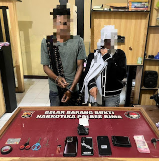 Lagi, Satreskoba Polres Bima Ringkus Sepasang Kekasih Pengedar Sabu, BB 99,10 Gram Disita
